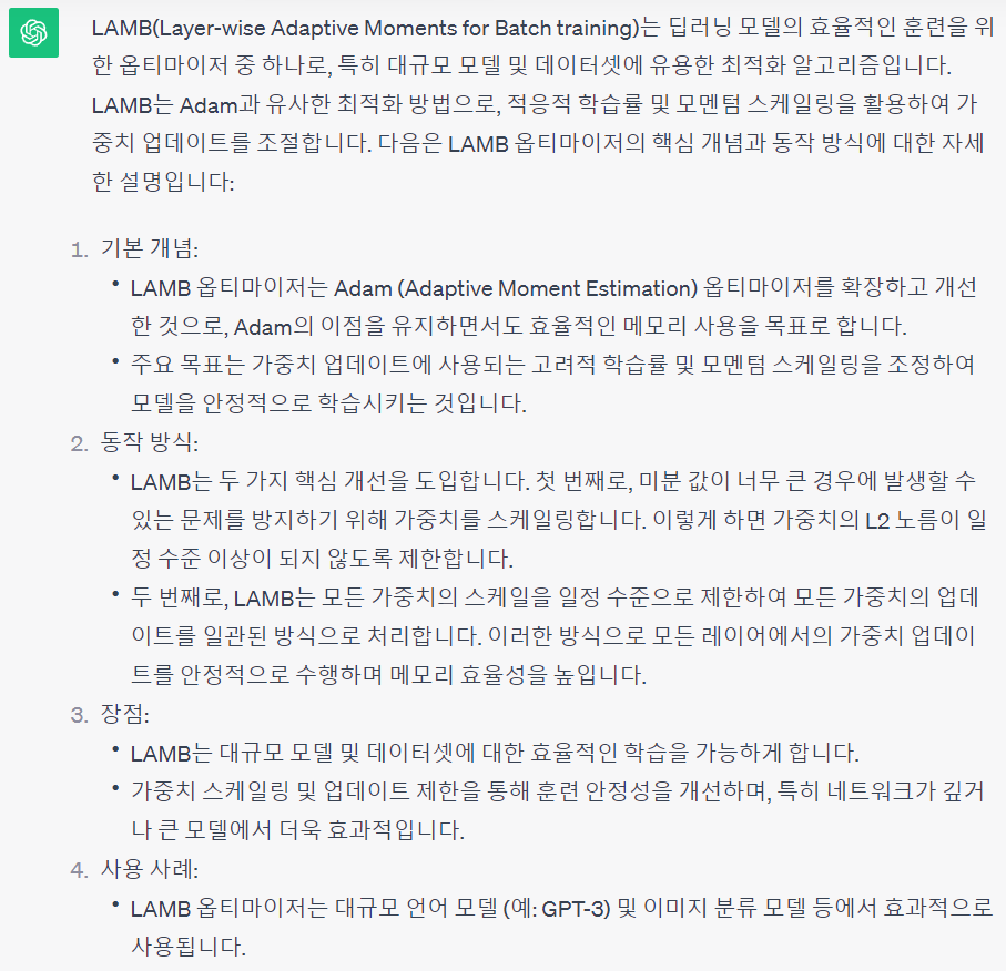 대규모 배치를 사용하는 CLIP 훈련에 유용한 LAMB optimizer 사용.