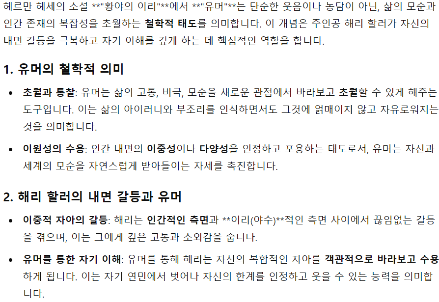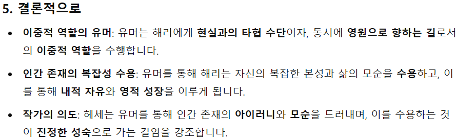 우여곡절 끝에, 결론적으로 헤세는 '유머'를 최종적인 해결책으로 제시한다.