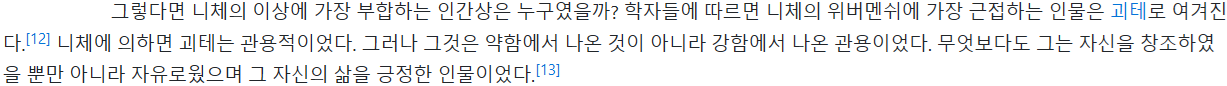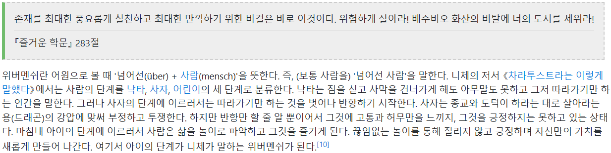 또한 위버멘쉬의 나무위키 페이지에는 다음과 같은 내용이 있다.